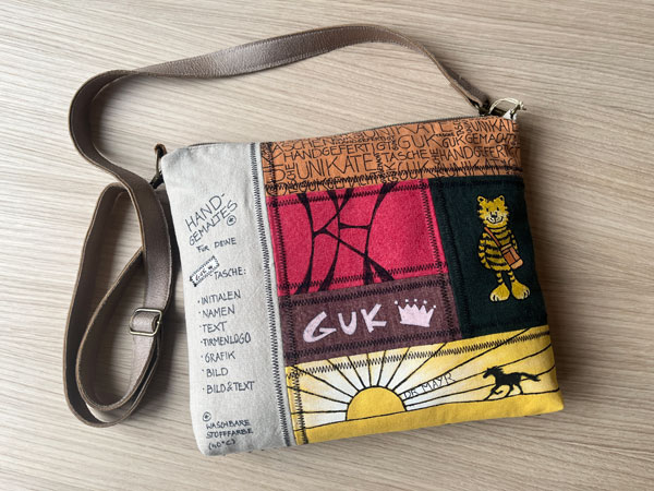 Du kannst dich gerne auch VOR DER BESTELLUNG schriftlich per Mail (mail@gukgemacht.de) oder WhatsApp (0171/ 800 56 96) an mich wenden, um gemeinsam deine Wunschtasche zu besprechen.